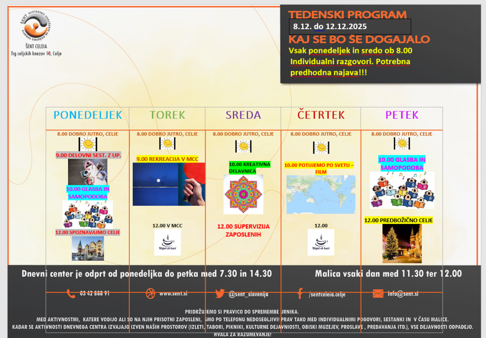 Na voljo so individualni razgovori in pomoč pri urejanju posameznih zadev. Individualni razgovori so vam na voljo po predhodni najavi pri svetovalki.